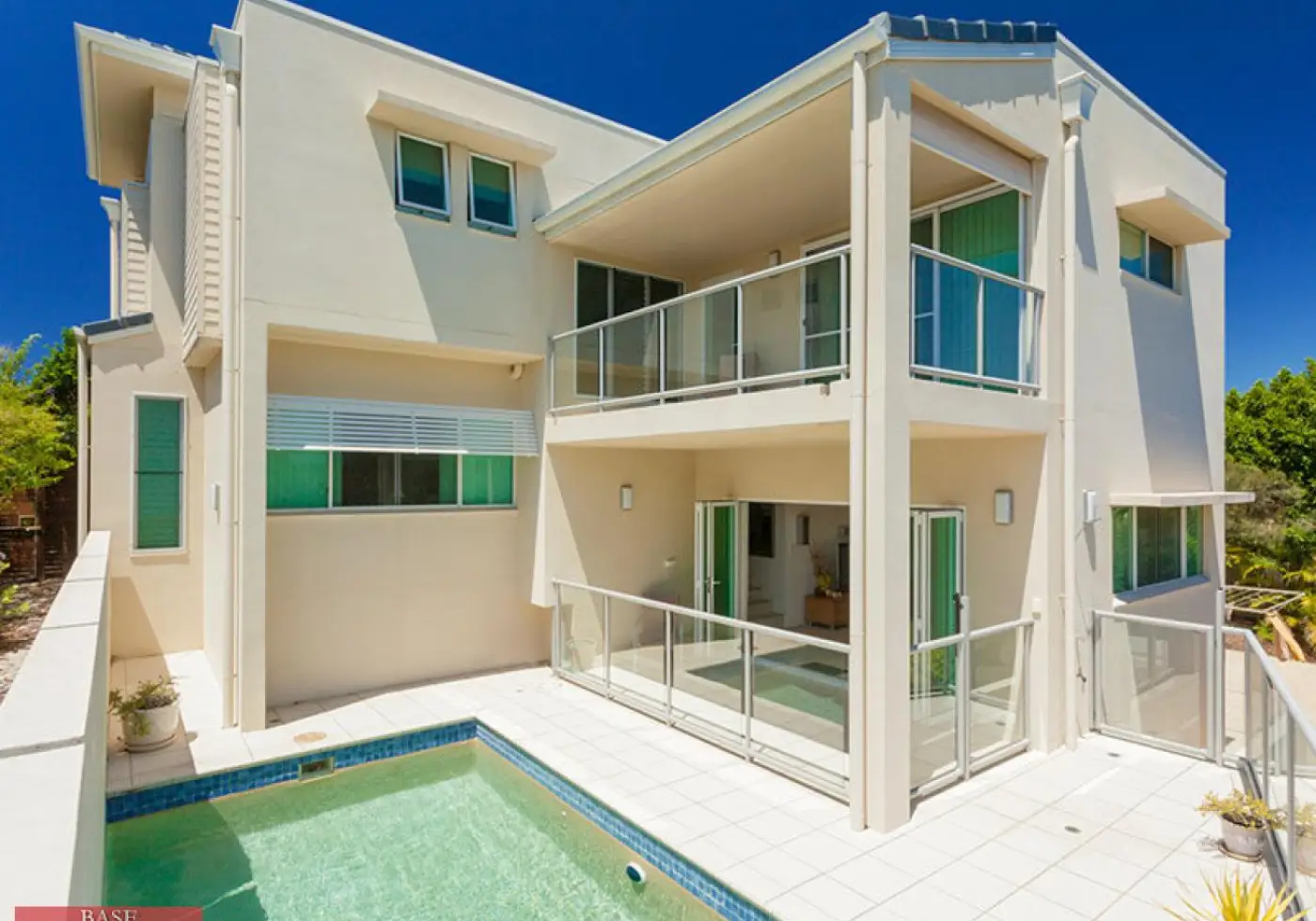 This classy modern light filled two storey split level home comprises four bedrooms up stairs. The front twin bedrooms are separated by an additional living area - both bedrooms and living area have direct access through tinted glass sliding doors onto a large and beautiful curved tiled deck and overlooks the sparkling South Pacific Ocean.