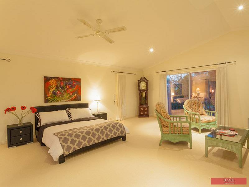 With 4 bedrooms in all, 3 ensuites, and even one of the best set up offices you will find in any residence and with separate entry from the street and fabulous gym room or extra TV den if you want, very nice lounge area with sliding doors to private court yard areas near the pool, air-conditioning up stairs and down. The dining room is situated in a very convenient position just off the kitchen for easy serving and family room as well, the kitchen has the lot....gas hot plates, separate oven, dishwasher, granite bench tops, all the cupboard space you'll want and even a lovely little surprise water view from the kitchen area and even one of the bedrooms. Immaculate tropical gardens throughout with inground pool set the scene. Solar panels on the roof, and of course a great big double remote control garage.
