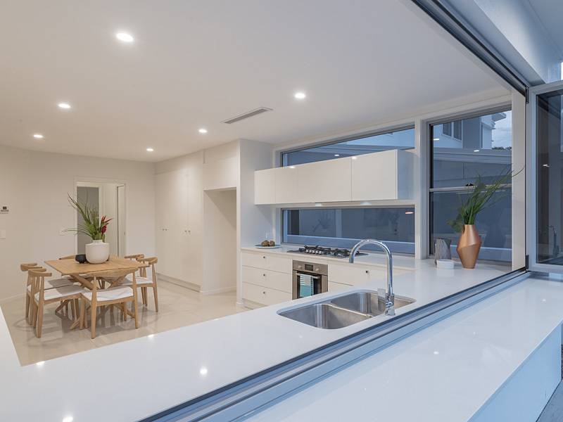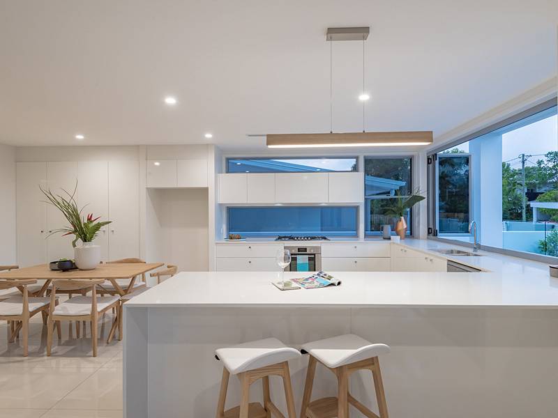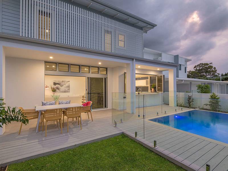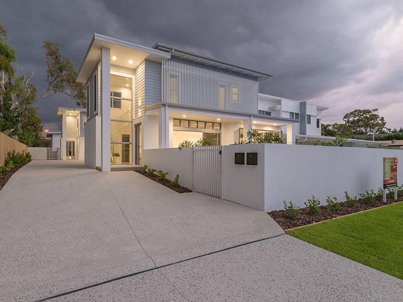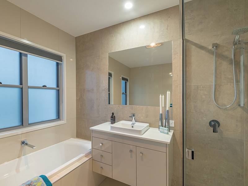 Already the talk of the town, both three bedroom townhouses are beautifully finished with spectacular tiling in both living areas and bathrooms, standout spacious kitchens with room for central work station bench as well as servery by fold windows to outside decking and pool entertaining area, massive cupboard areas, stone bench tops compliment the beautiful tiled floor areas. High ceilings and fully ducted 8 zoned air-conditioning throughout, powder room, big laundry and the massive super size double garage has direct entry to the townhouse.