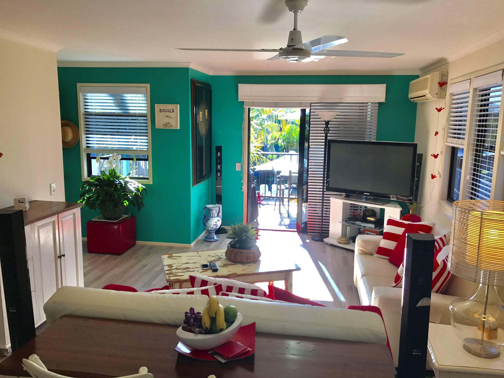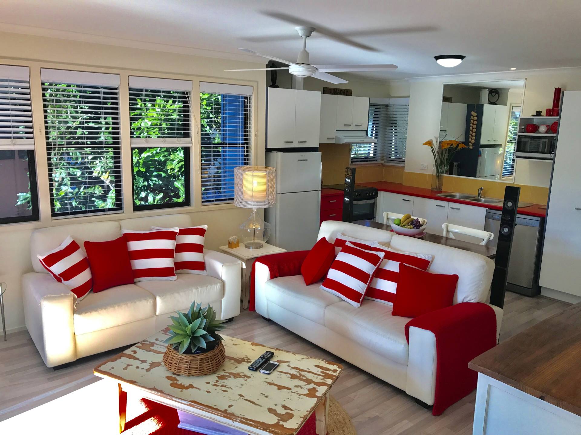 This unit is in outstanding condition, beautifully presented and comes partly furnished. It features roof top solar panels, heat pump hot water system and all windows are conveniently tinted and protected with Crimsafe screens. The front terrace, overlooking the beautifully kept grounds and gardens, has been freshly polished along with the back decking. There is air-conditioning upstairs and downstairs and there are ceiling fans in each bedroom and living area.