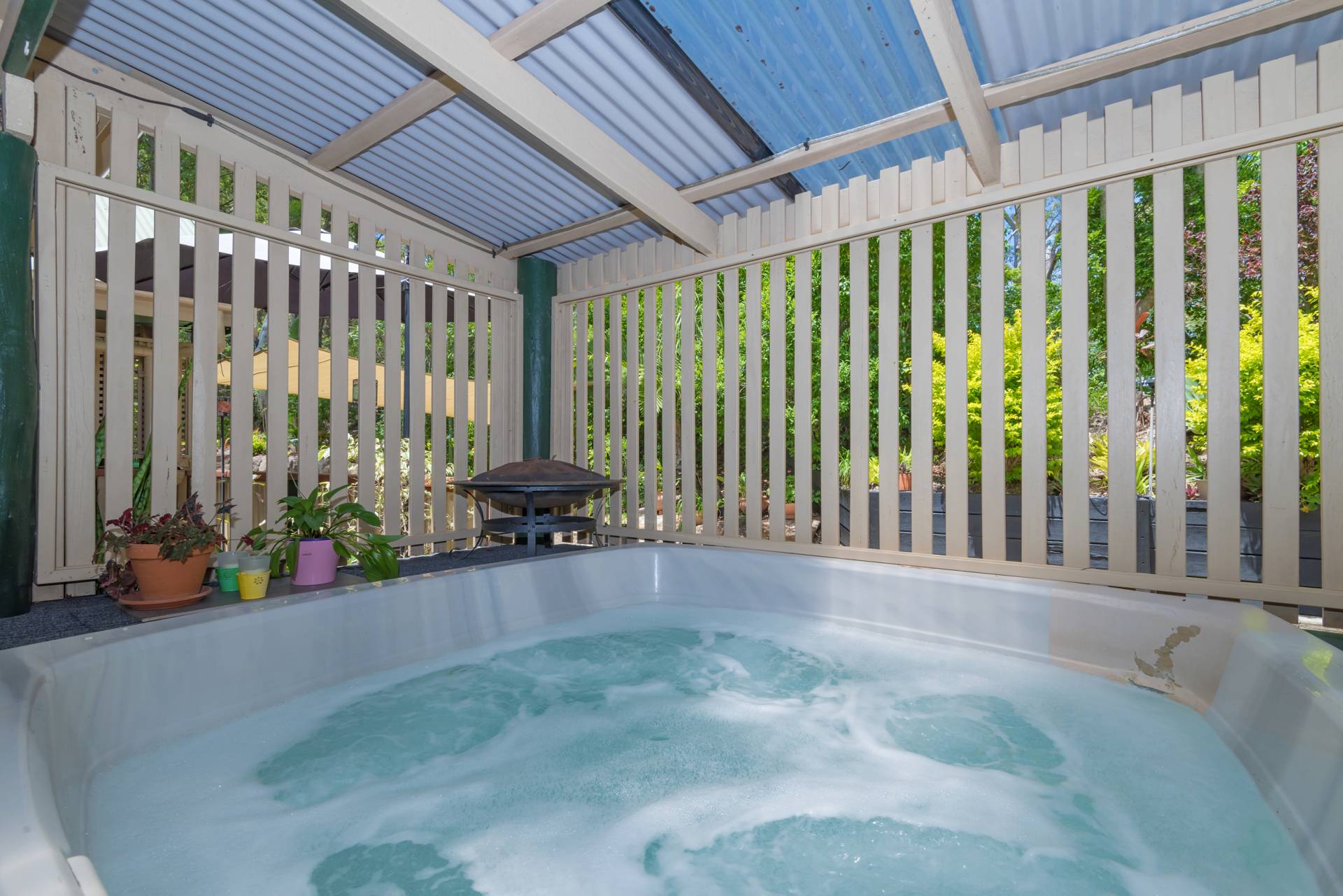 The two remaining bedrooms and study are back downstairs along with the outdoor spa situated on the picturesique deck.