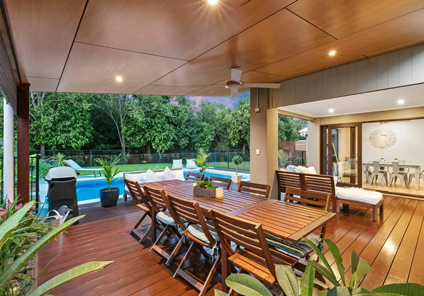 Overlooking the stylish alfresco outdoor entertaining area you’re greeted with a luxurious pristine swimming pool and low maintenance fenced garden. Offering an excellent Northerly aspect with a backdrop into the forest creates a peaceful ambience all throughout the year.