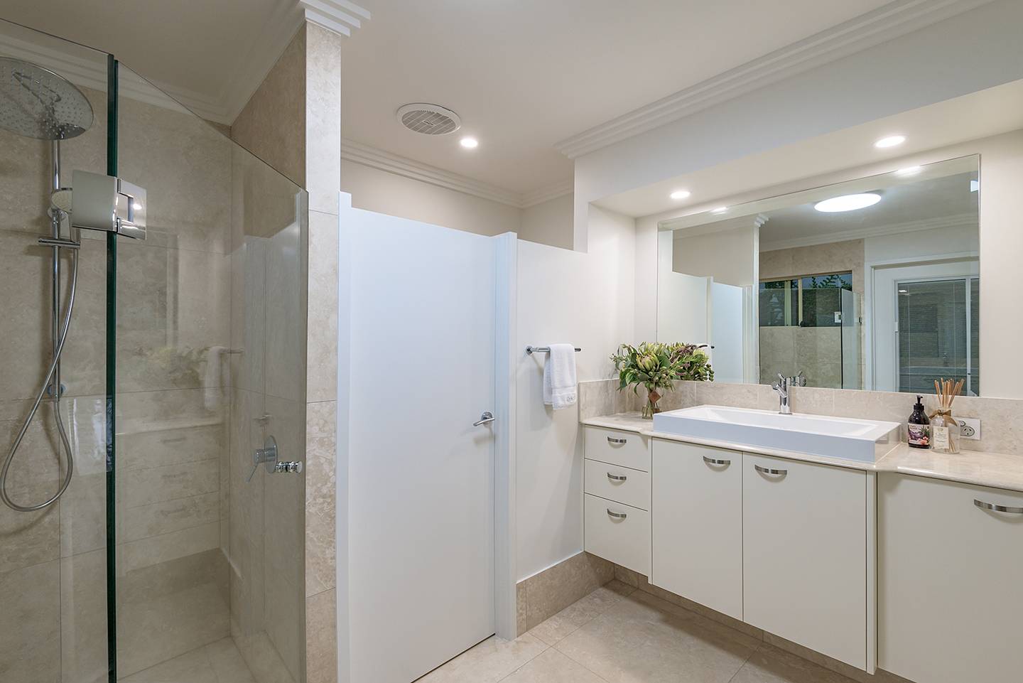 On the ground floor there is another bedroom with ensuite and walkin robe and fourth bedroom, but ideally a perfect study with another bathroom opposite.