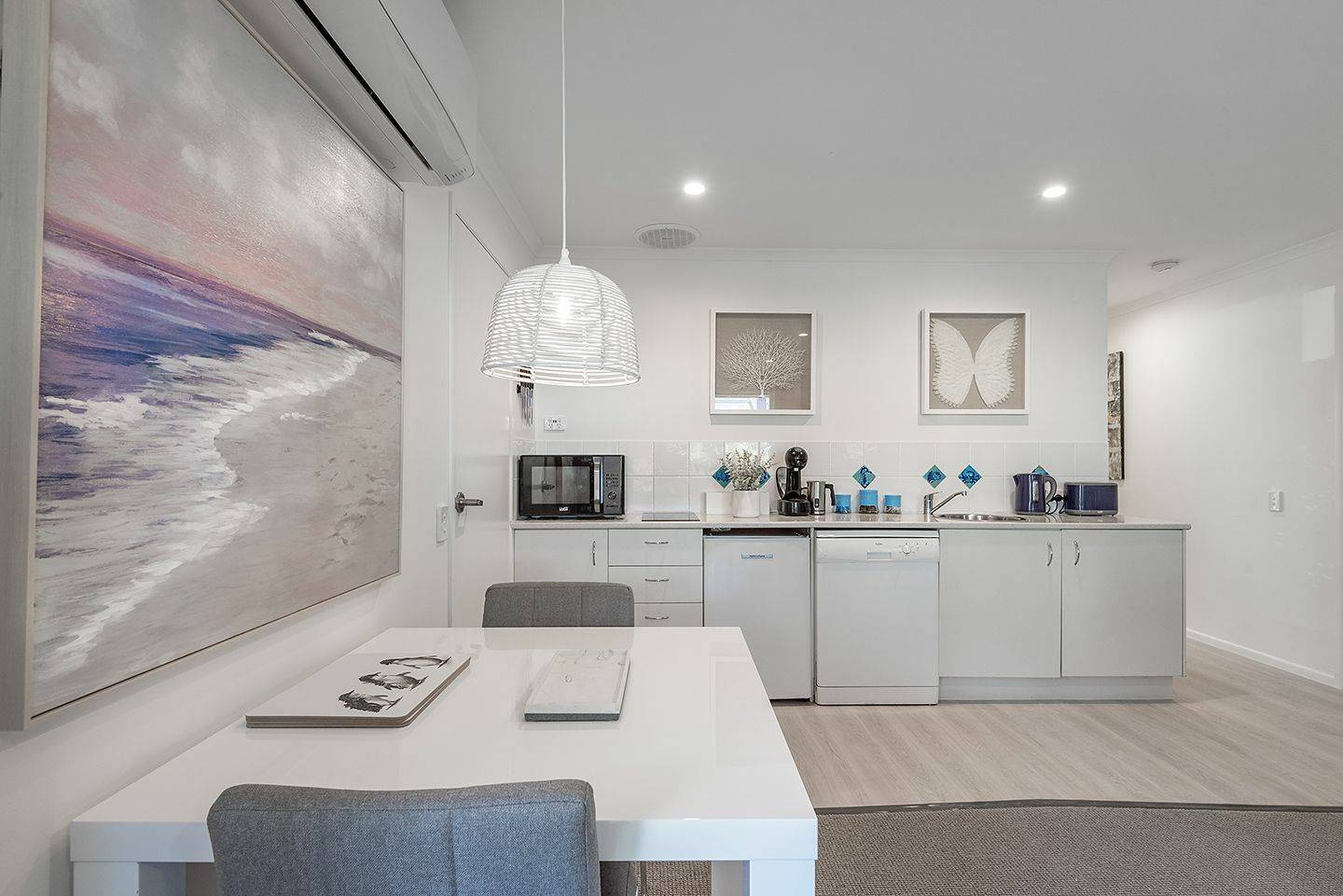 All on one level, with beautiful bathroom, a great kitchen which shines with style and practicality, very spacious lounge & dining area, full laundry facilities, air-conditioning, fans, internet access and cute terrace for your evening drinks.