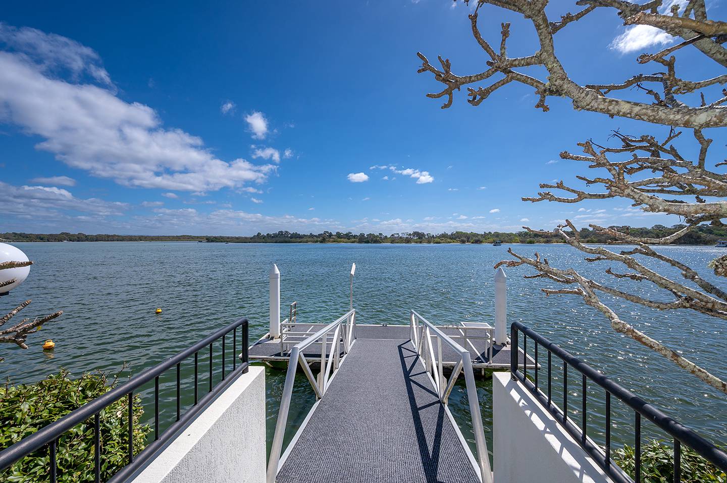Comprising 2 bedrooms plus study or come part time extra bedroom, beautiful bathroom & laundry, open plan living and dining with undercover outdoor entertaining terrace overlooking the pool and jetty below. Security gated driveway with lock up garage with storage room or workshop.