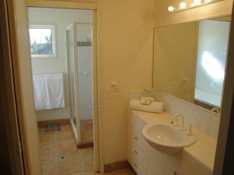This is a most appealing townhouse comprising 3 bedrooms (one on ground floor ), upstairs work area suitable for computers & some gym equipment, upstairs there are two bedrooms, lovely bathroom ( with spa ), very sizeable balcony over looking Bluefin Park next door. Down stairs, master bedroom with ensuite and walkin robe, very nice open plan living area off a recently new spacious kitchen with large oven and gas hot plates, new fisher & paykel dishwasher and beautiful two pac finished cupboards and granite bench tops, 36 hole wine rack, large pantry, all fully fly screened.